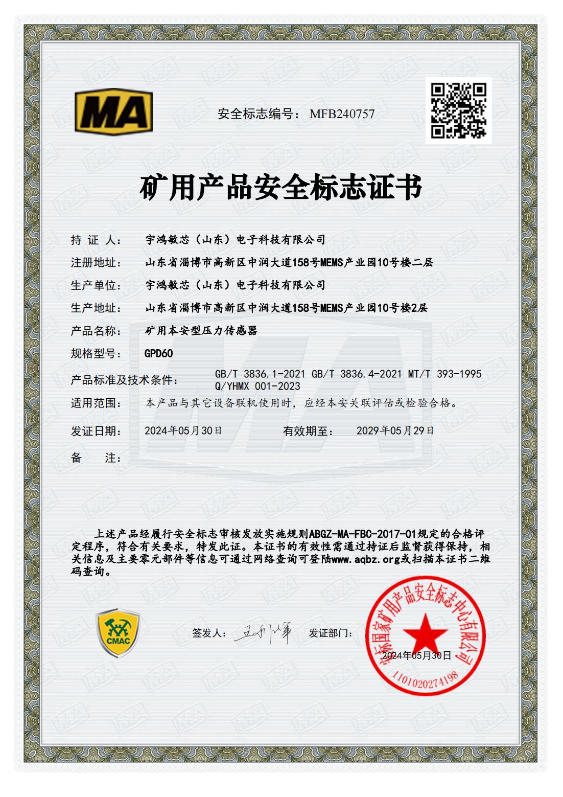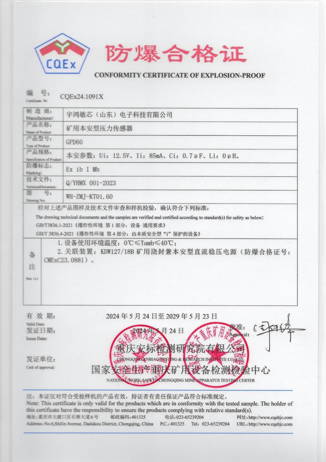 This model is a mine-used intrinsically safe pressure sensor, which holds an explosion-proof certificate and a safety certificate for mine products. The product integrates processes such as sputtering thin films, precision etching, and laser welding. During the production process, it has undergone strict high - and low - temperature cycling and pressure pulse fatigue treatments.